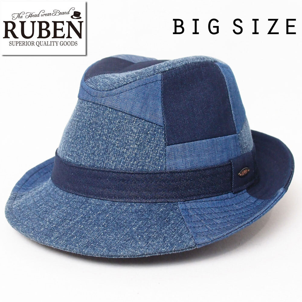 - 新品 RUBEN パッチワークデニム 中折ハット ネイビー BIG SIZE