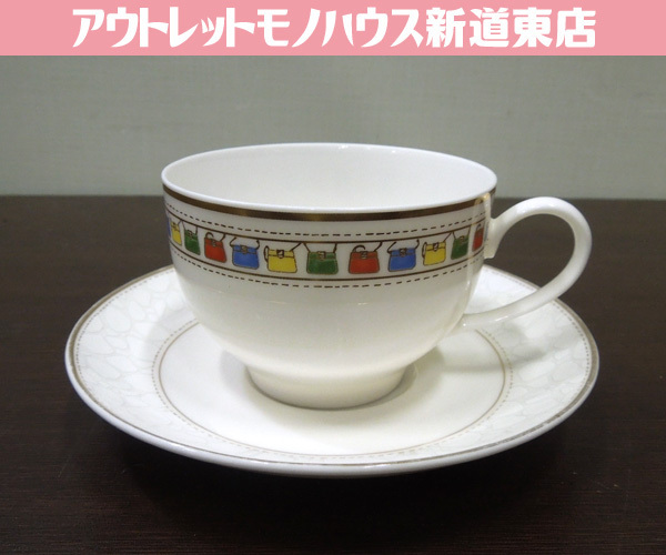 カップは可愛らしいハンドバッグ柄でソーサーはクロコ型押デザインが施された