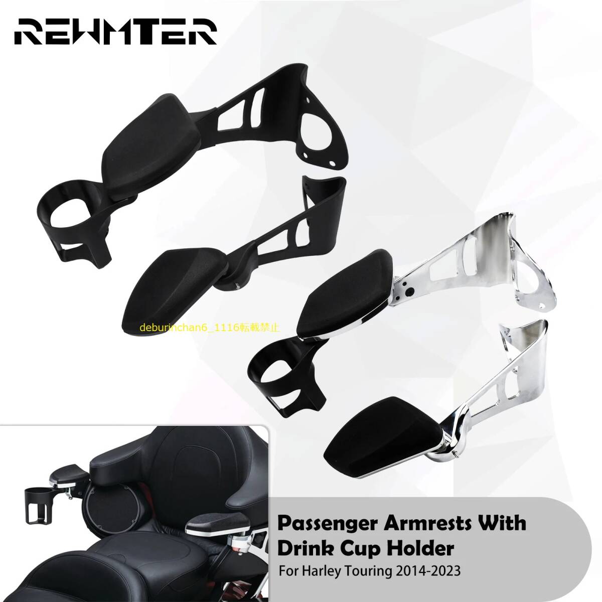 - リア 助手席 アームレスト カップホルダー付き Harley ハーレー ツーリング 2014-2021 メタル
