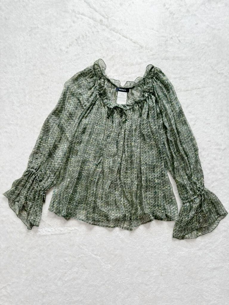 > MAX&CO size38 イタリア製シルクシフォントップス シャツブラウス グリーン ホワイト マックスアンドーコー