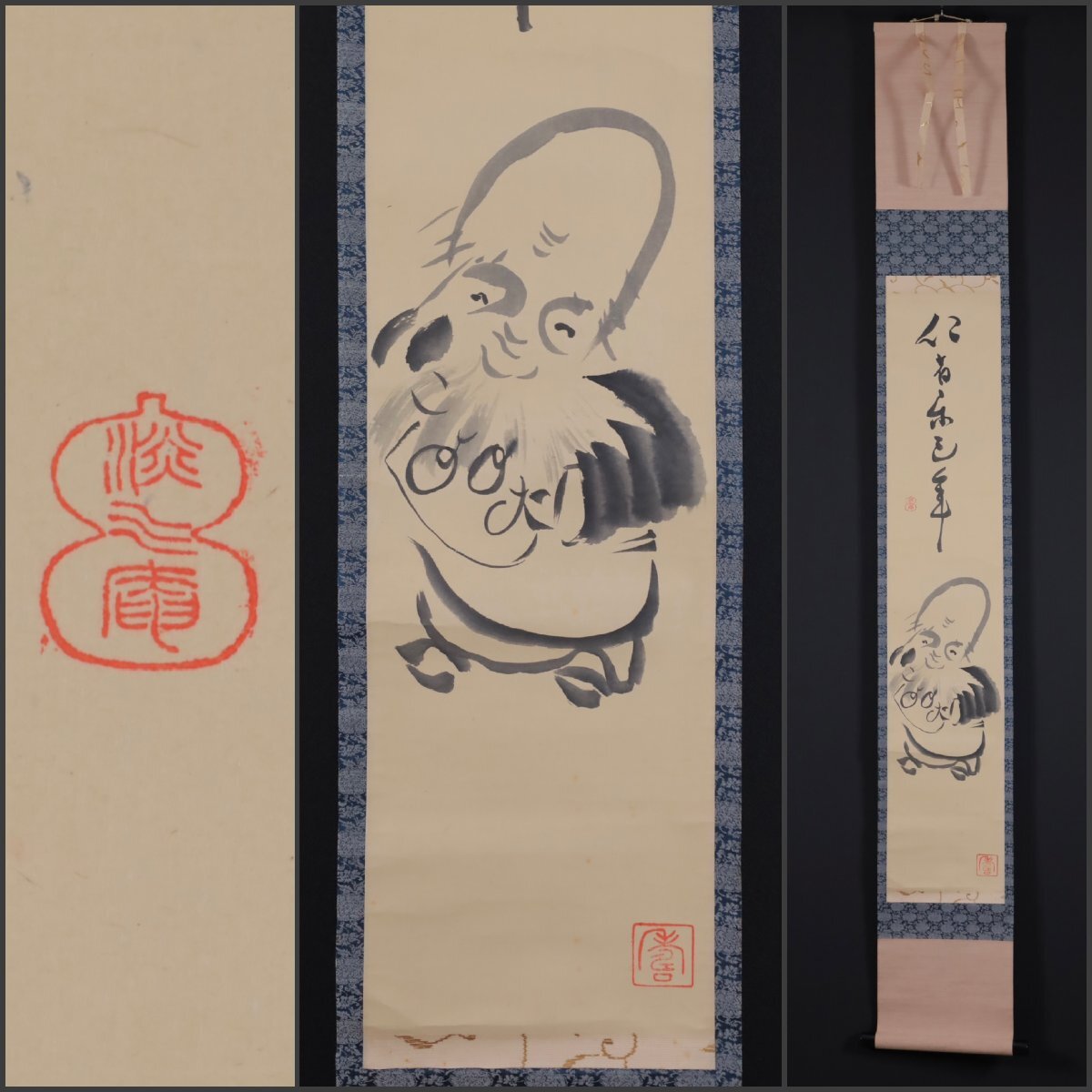 - 【模写】吉】10933 淡川康一 寿老人画賛 禅画研究家 蒐集家 仏教 大阪学院大学教授 書 茶掛け 茶道具 掛軸 掛け軸 骨董品