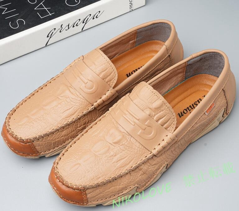 - 新品ローファー スリッポン 牛革 ビジネスシューズ切替 配色メンズ レザーシューズ 本革 ドライビング 紳士靴 ライトブラウン LF505