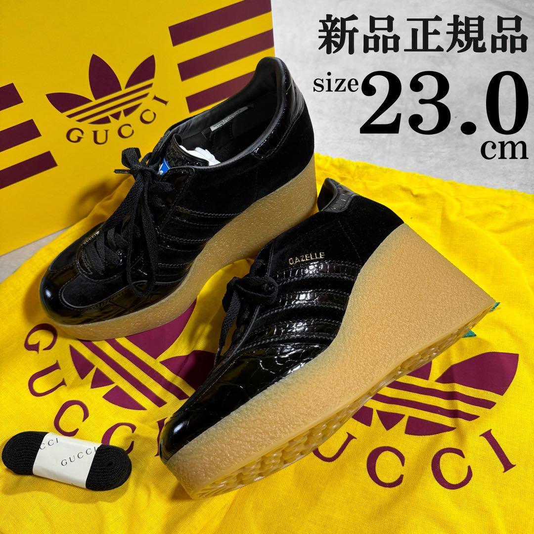 > 新品 23.0cm グッチ × アディダス ガゼル スニーカー ストライプ GUCCI × adidas originals 靴 シューズ 厚底 ストライプ