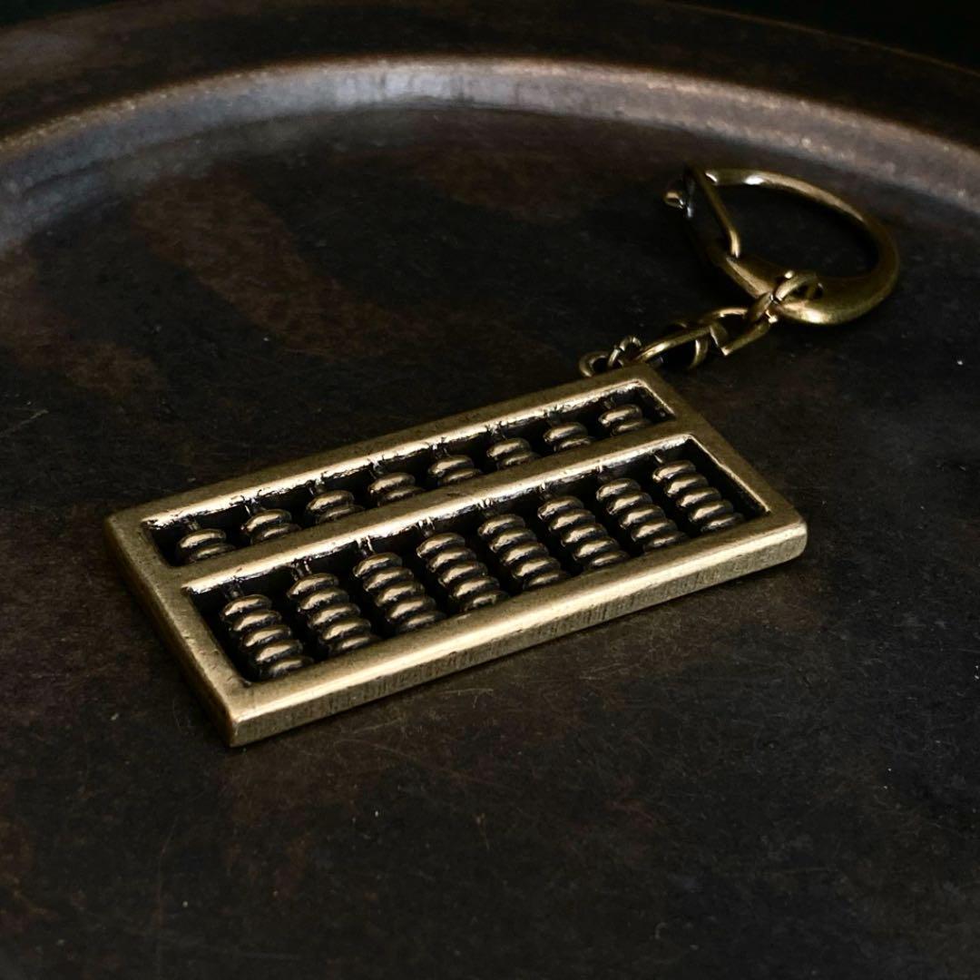 - 117 真鍮 キーホルダー そろばん 珠算 ビンテージ 風水 金運 開運 レトロ アンティーク 真鍮製 チャーム アクセサリー パーツ ハンドメイド