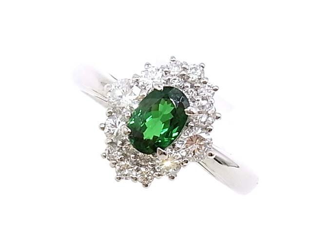 - g17618 Pt900 グリーングロッシュラーガーネット0.61ct D0.55ct リング USED 美品 6.0g #12 ソーティング付