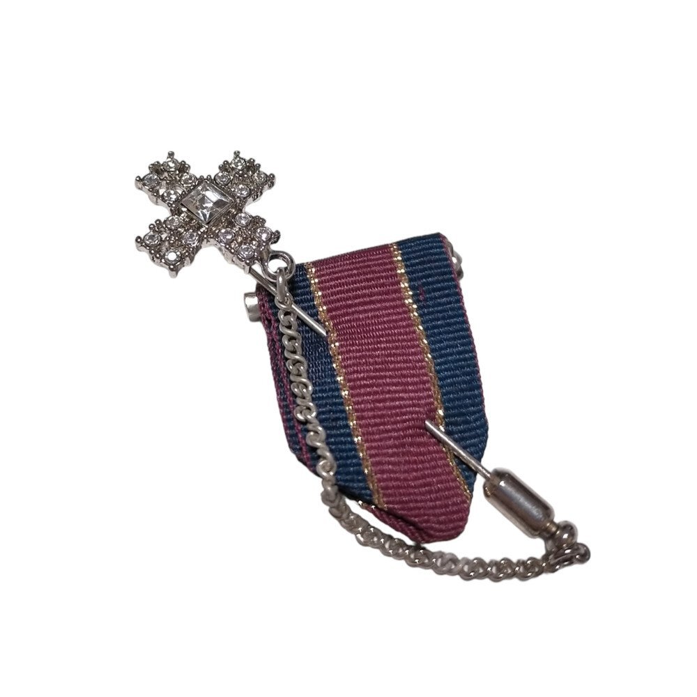 - 新品正規70%OFF COMME CA MEN コムサメン 日本製 ラペルピン 銀色 スワロフスキー クロスリボンチェーン ロゴ入り袋付き 2 3272