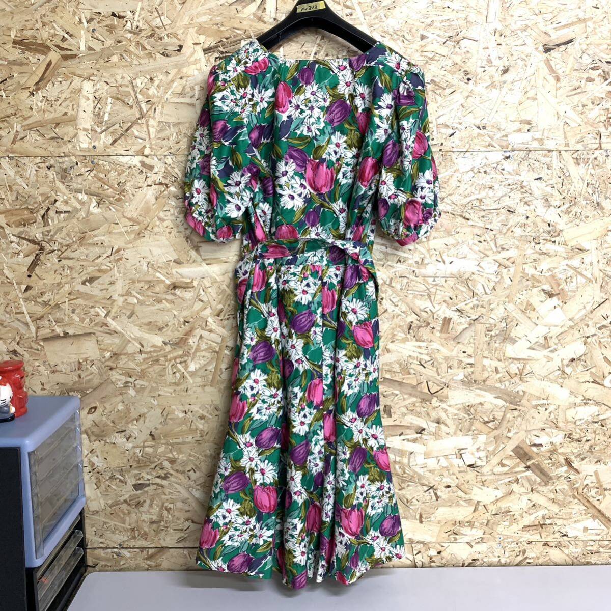 - ワンピース ロング ロングワンピース 花柄 古着 花柄 緑 夏服 N312