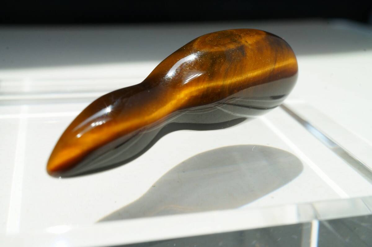 - 【即決特別価格!】希少30年前の未使用在庫!上質タイガーアイ・虎目石彫刻カービング「瓢箪」ルース色合い模様や彫が美しい22.5ct