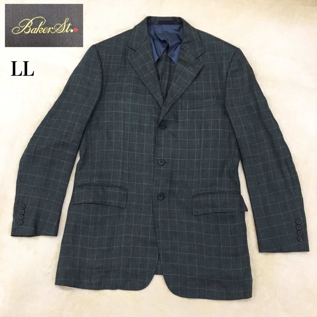 - Baker ST. ベイカーストリート チェックブレザー リネンサマージャケット テーラード 背抜き ツーベンツ 紳士夏服 メンズ LL 三陽商会