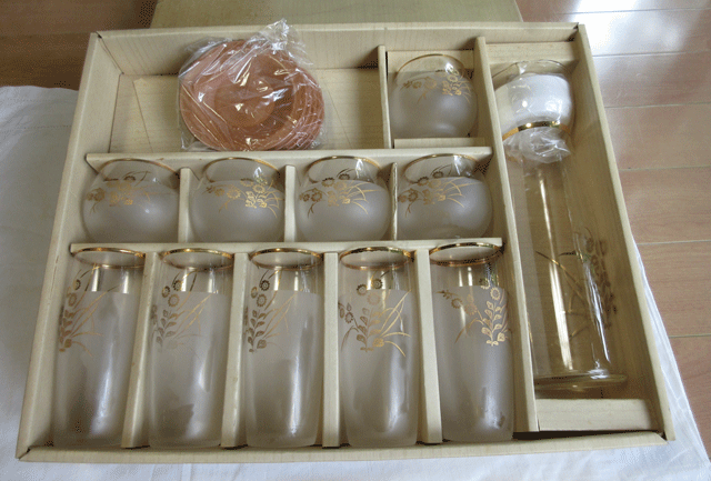 - ☆未使用:ガラス工芸品☆涼しげな冷茶セット4点