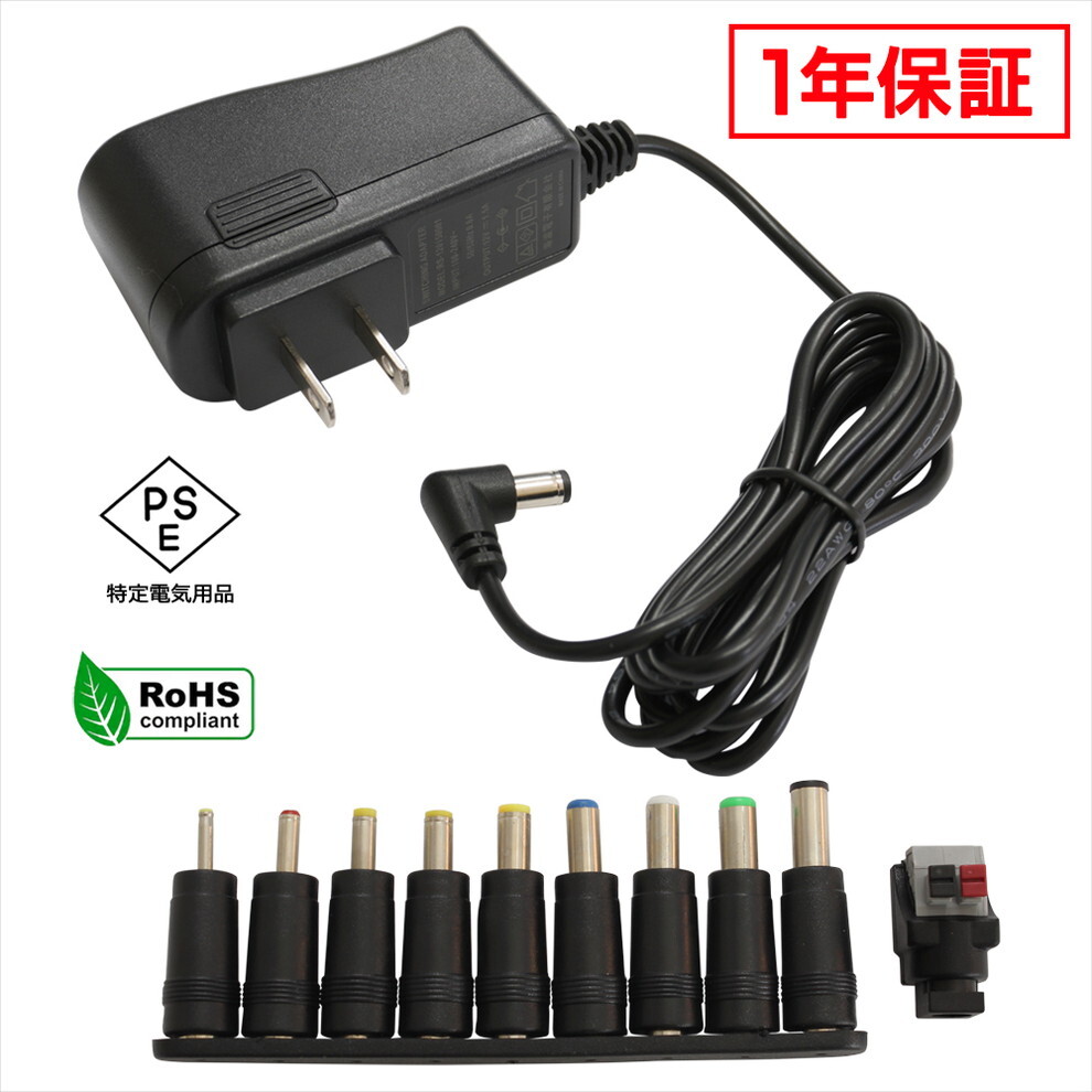 - ACアダプター 汎用電源 12V 1.5A 18W L型コネクタ 10種セット 5.5mm 2.1mm PSE認証 1年保証