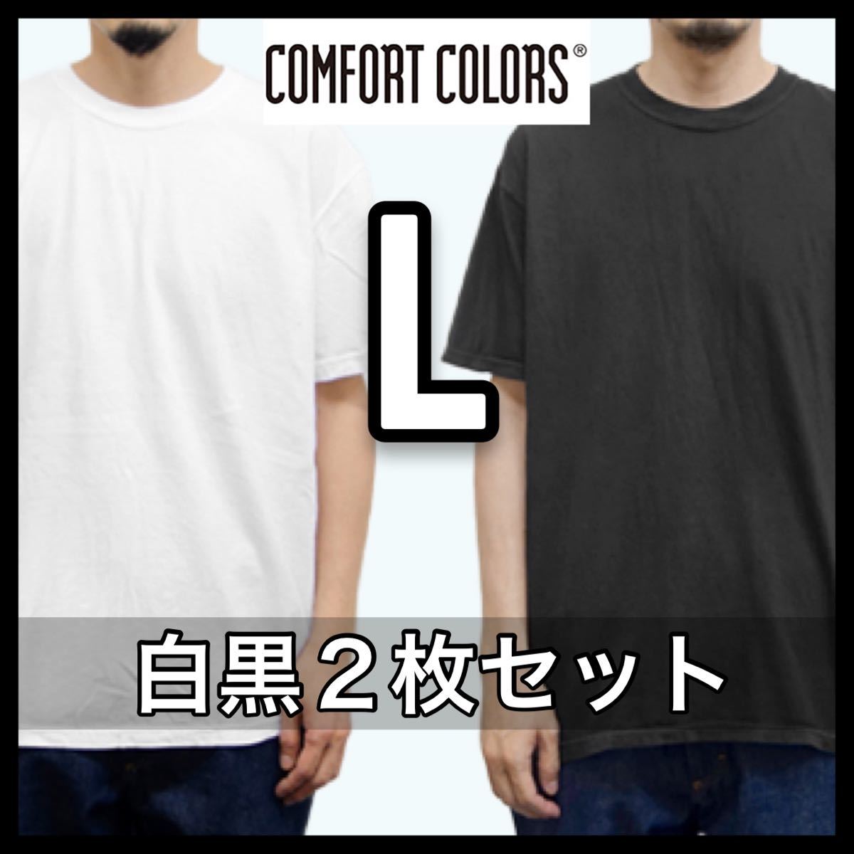 > 新品未使用 コンフォートカラーズ ガーメントダイ 6.1oz半袖Tシャツ 白 黒 L サイズ COMFORT COLORS GARMENT DYE TEE