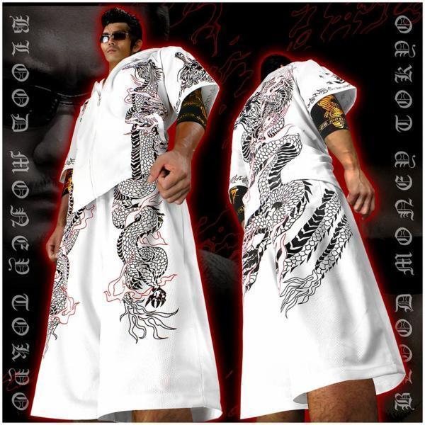 > 半袖 半ズボン セットアップ ジャージ メンズ 和柄 龍 上下 夏物 服 オラオラ 悪羅悪羅 チョイ悪 ヤンキー ヤクザ 派手 部屋着 13016 白 黒