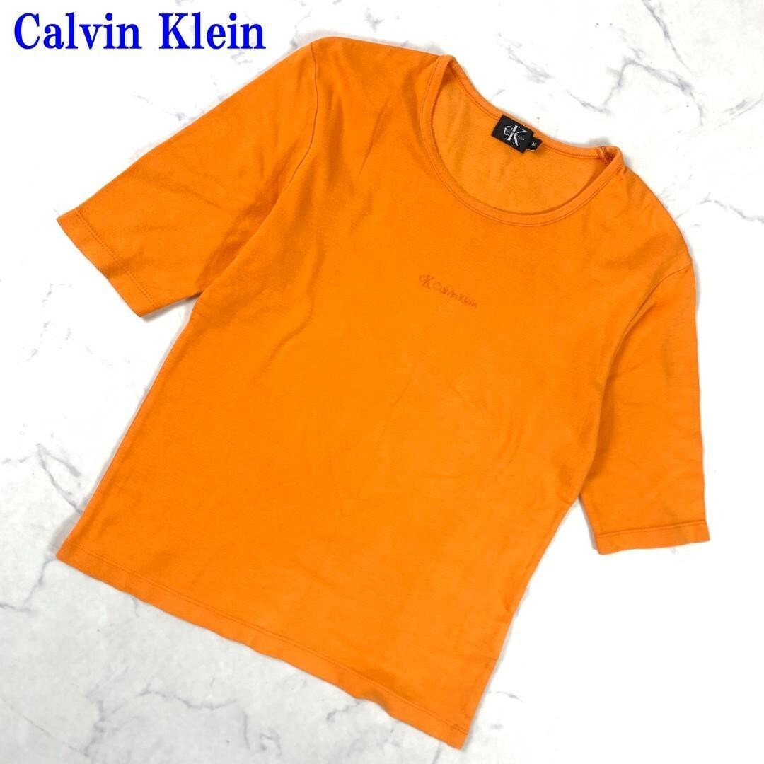 - Calvin Kleinカルバンクライン 5分袖カットソーカジュアル カラートップス ブランドネーム刺繍有 コットン100%オレンジM C397