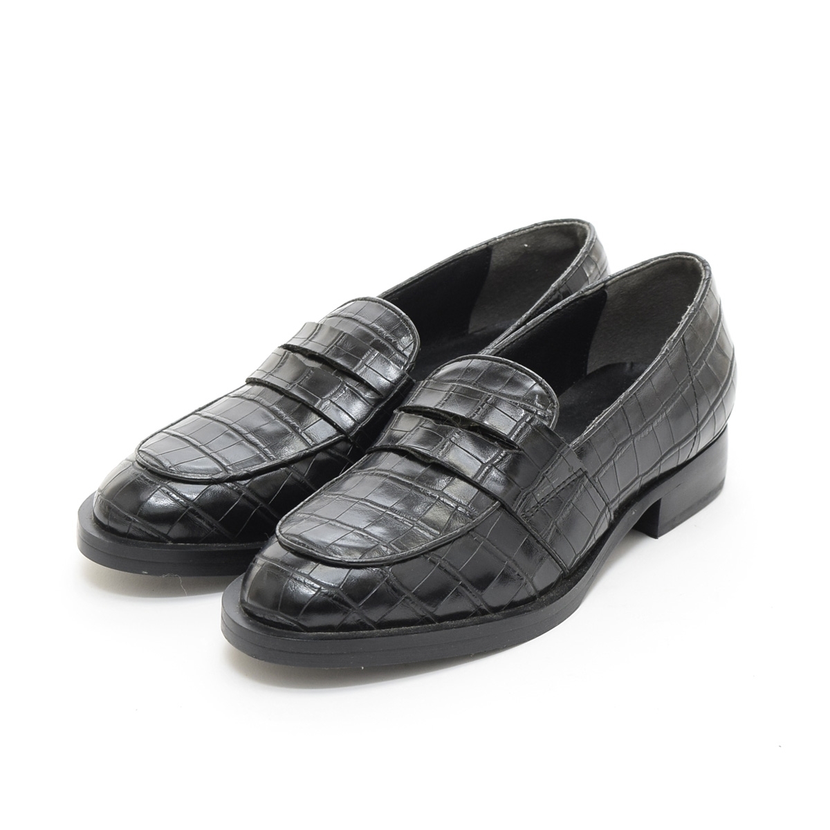 - □466395 未使用品 EMODA エモダ ○ローファー クロコレザーペニーローファー コインローファー S(22.5cm相応) レディース ブラック