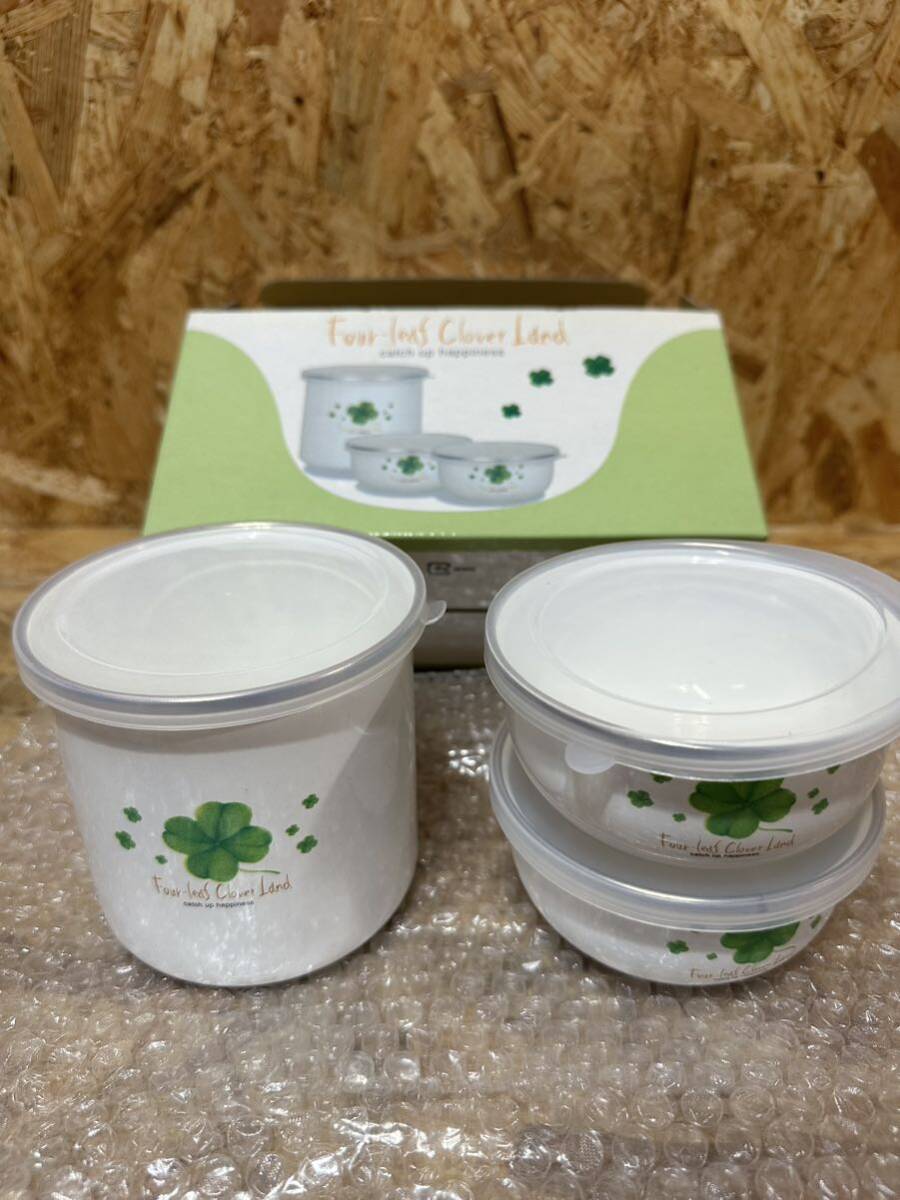 - クローバー 抗菌 ホーローストッカー 3点セット ほうろう 保存容器 美品