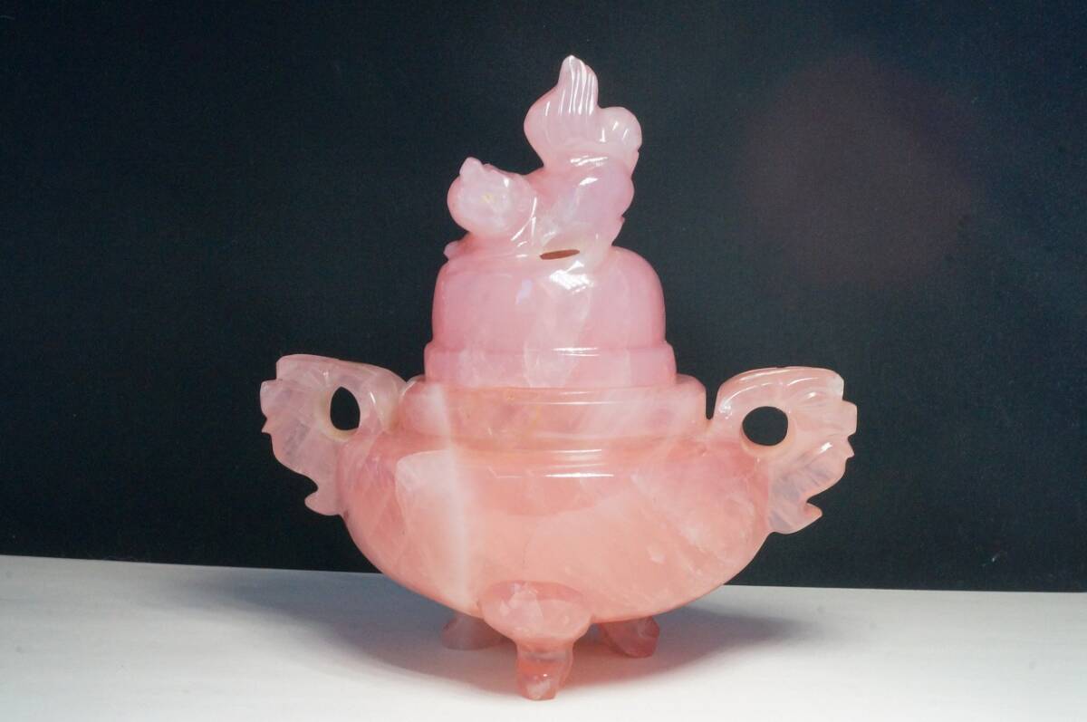 - 【即決特別価格!早い者勝ちです!】希少!35年前の貴重在庫!天然紅水晶 ローズクォーツ「香炉」彫刻研磨【甲府で彫刻研磨】