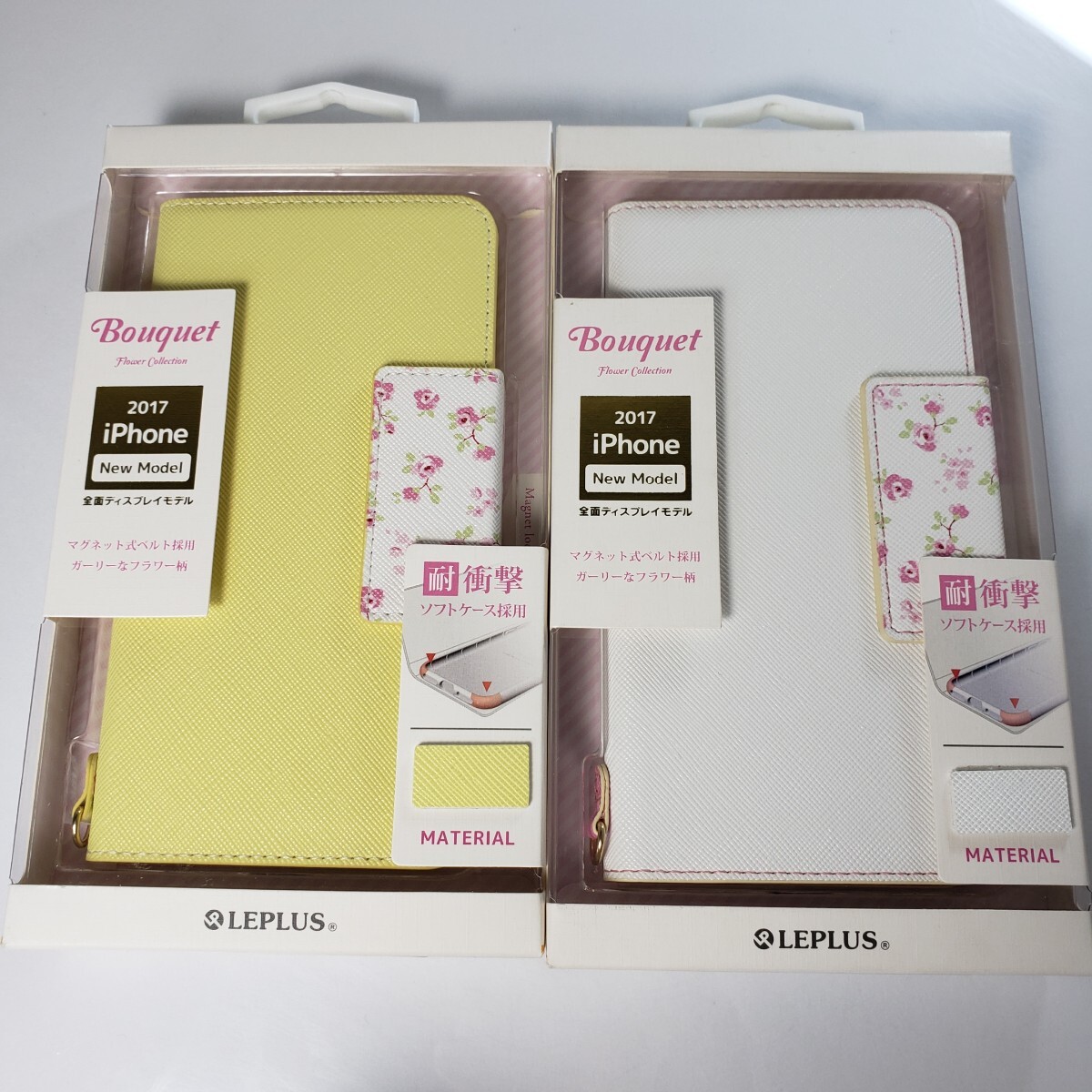 > 2色セット iPhone X Xs 手帳型ケース フラワー柄 イエロー ホワイト