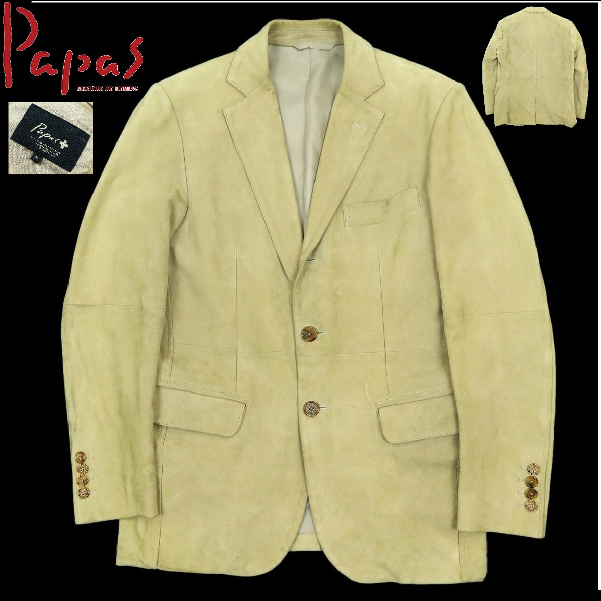 > 【R25】【美品】【日本製】Papas+ パパスプラス レザージャケット テーラードジャケット オールレザー やぎ革 スエード 日本製 サイズS