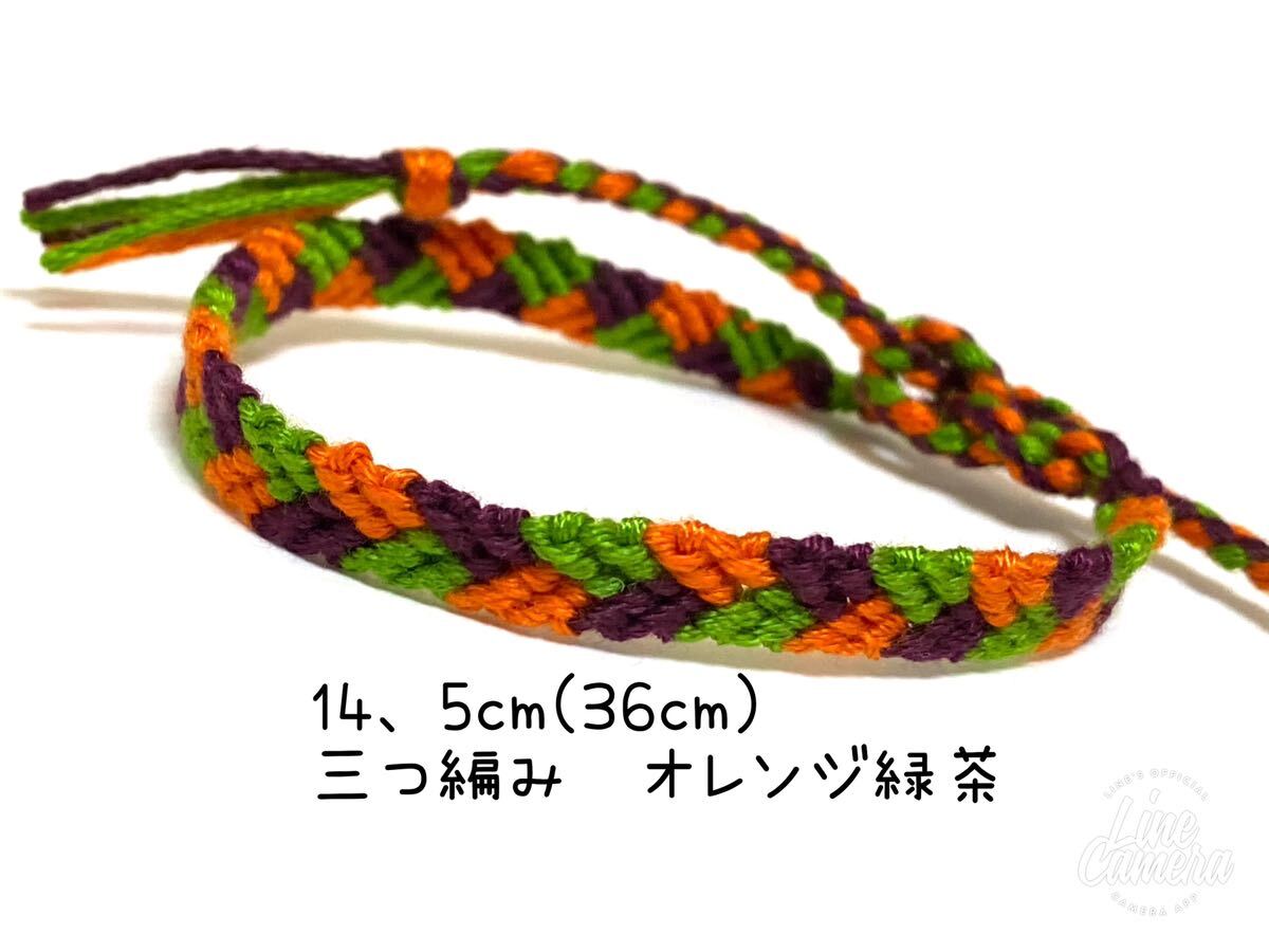 - ハンドメイド★ミサンガ 三つ編み模様 オレンジ緑茶(1174)