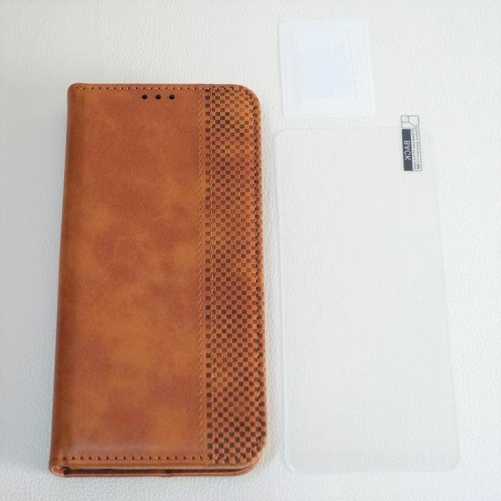 - 【3点セット】OPPO Reno 7A レザーケース+画面保護ガラスフィルム+カメラガラス 手帳型レザーケース 液晶保護 レンズ保護