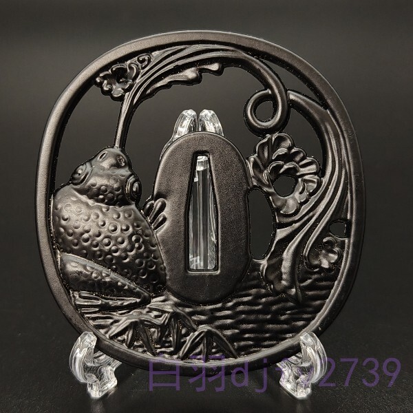 - SY35 日本刀装具 刀鍔 蝦蟇吐水図 合金製 現代品 つば ツバ 刀剣美術 重さ約122G 厚さ約6mm
