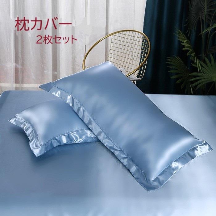 - 【P011601】冷感 美髪 枕カバー ピローケース ブルー/2枚セット ポリエステル繊維100%