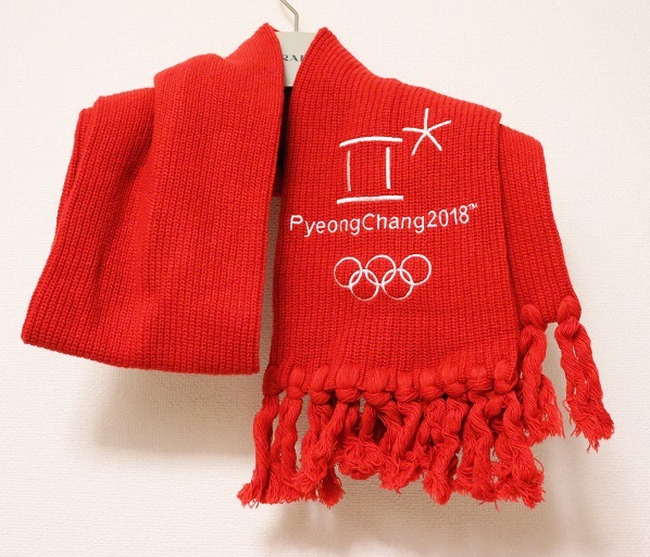 - 超レア!大き目刺繍2か所!ピョンチャン オリンピック2018冬季 ウールマフラー 刺繍入り レッド 美品