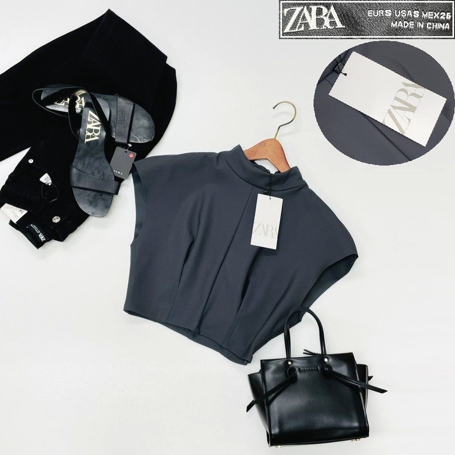 - /S/ ZARA チャコールグレー ベスト レディース タグ カジュアル トップス フェミニン 大人可愛いナイロン 春夏 ノースリーブ ザラ