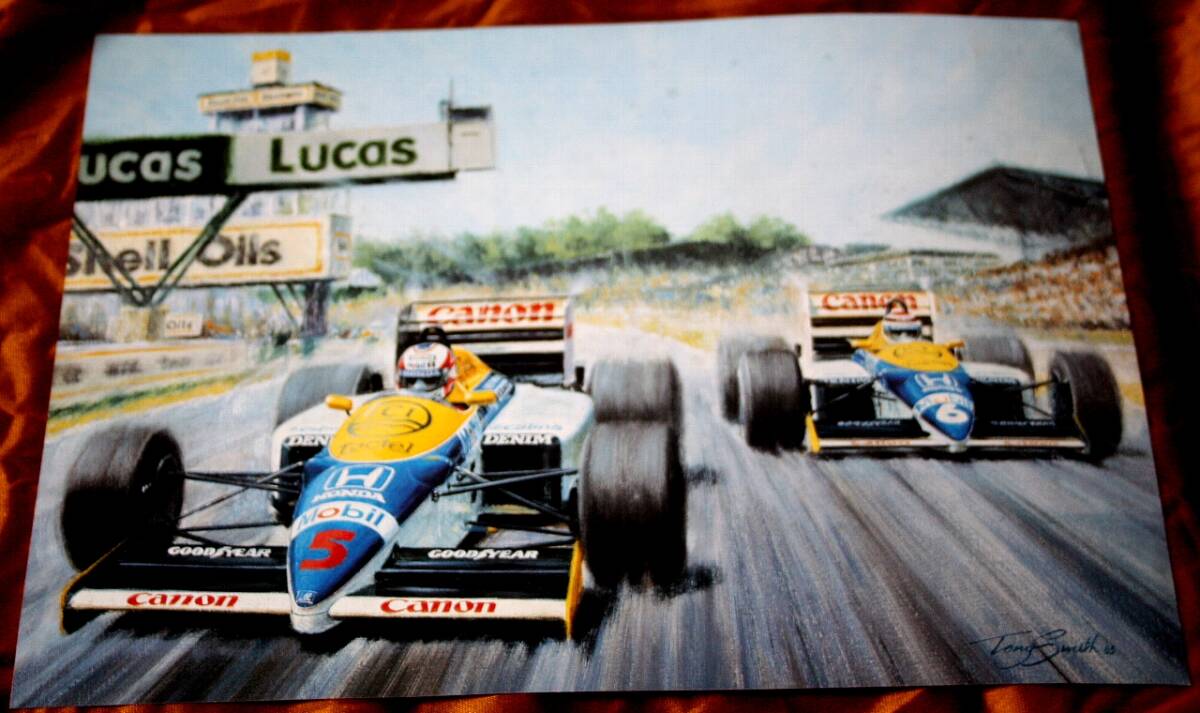- ナイジェル・マンセル VS ネルソン・ピケ ウイリアムズFW11他3点のセット 水彩画(印刷物) 数十年前にイギリスのサキットで購入