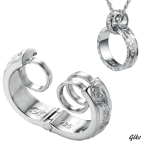 - 【大切な記念日の贈り物に最適なリングホルダー】 指輪をネックレスに シルバー925 ハワイアンジュエリー ペンダント ハワイアン彫