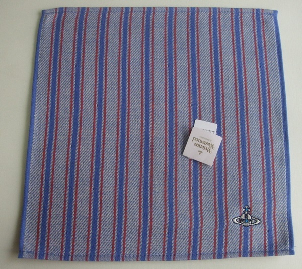- Vivienne Westwood ヴィヴィアン・ウエストウッド ストライプ柄 タオルハンカチ 未使用品 ブルー系 オーブ刺繍