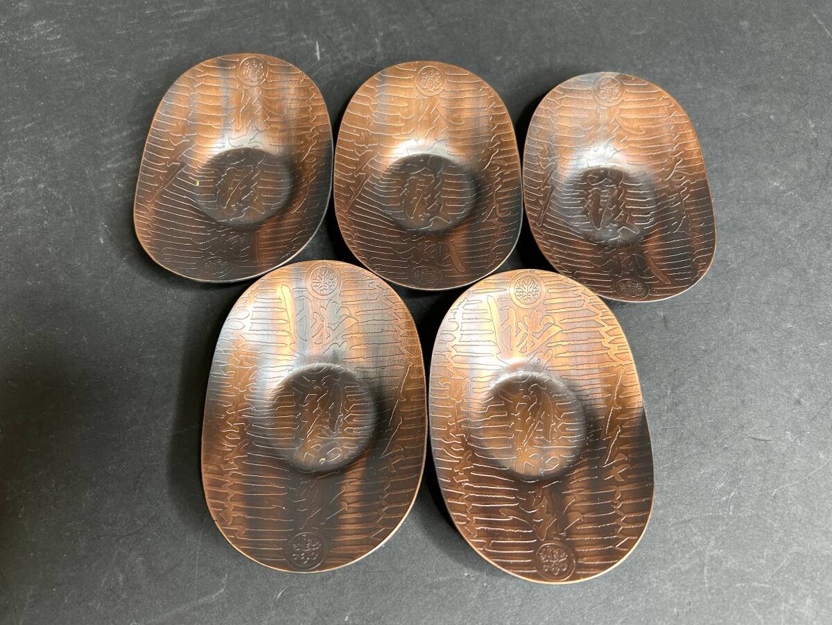 - 未使用 高岡銅器 勝彦造 小判型 銅製 茶托