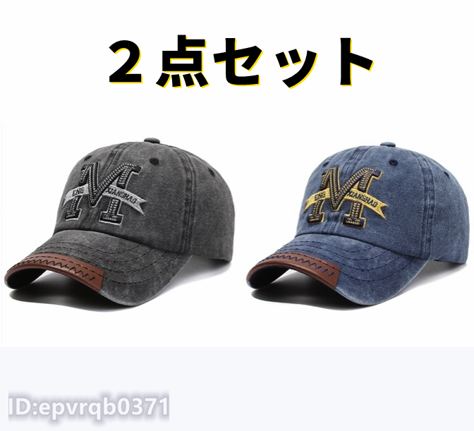 - 2点セット 野球帽 新品 刺繍 英文字 ゴルフキャップ メンズ キャスケット 帽子 柄物 カジュアル フリーサイズ 調節可能 黒/ブルー