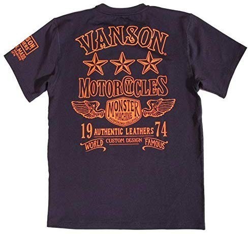 - 当店別注 VANSON ドライ 半袖Tシャツ スリースター★★★吸水速乾 抗菌防臭 UVカット ネイビー【S】ACV-902 バンソン 男女兼用 吸汗速乾