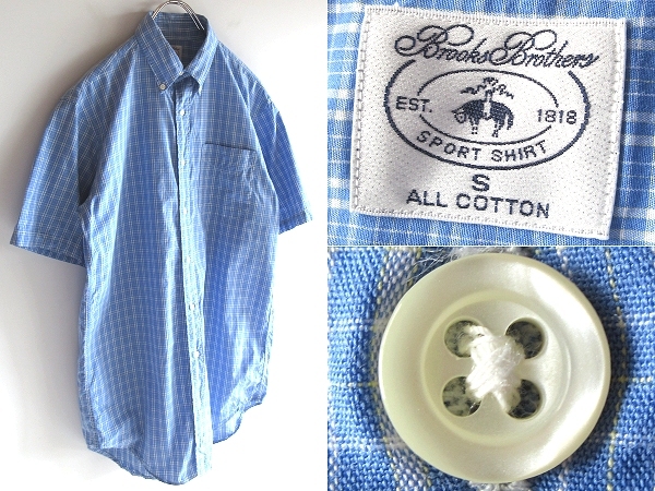 > 希少 90sビンテージ Brooks Brothers ブルックスブラザーズ SPORT SHIRT コットン チェック 半袖 BDシャツ S ブルー 青 ネコポス対応