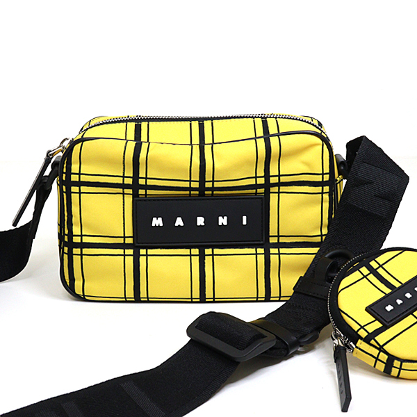 - MARNI マルニ チェック PUFF カメラバッグ イエロー ブラック 斜め掛け クロスボディ ミニポーチ付【中古】Sランク