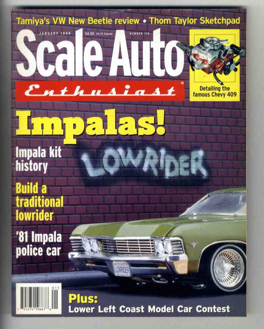 書名/記事: 99.1 Scale Auto Enthusiast/インパラ・ローライダー、'81 インパラ・ポリスカー、シェビー409エンジンのディテーリング、シボレーインパラ・キットの歴史、1962シボレーベルエア・ストリートマシン、、...
