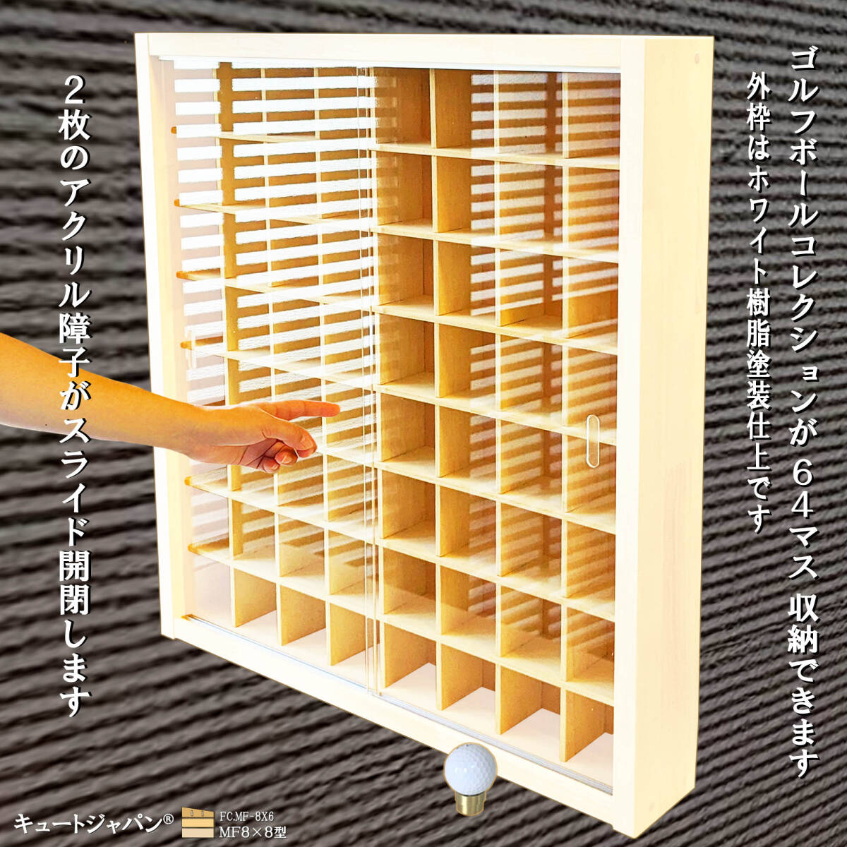 - 送料無料★【ゴルフボールショーケース】ゴルフボール コレクション ディスプレイ 木製収納棚 アクリル障子付 ホワイト色塗装 日本製