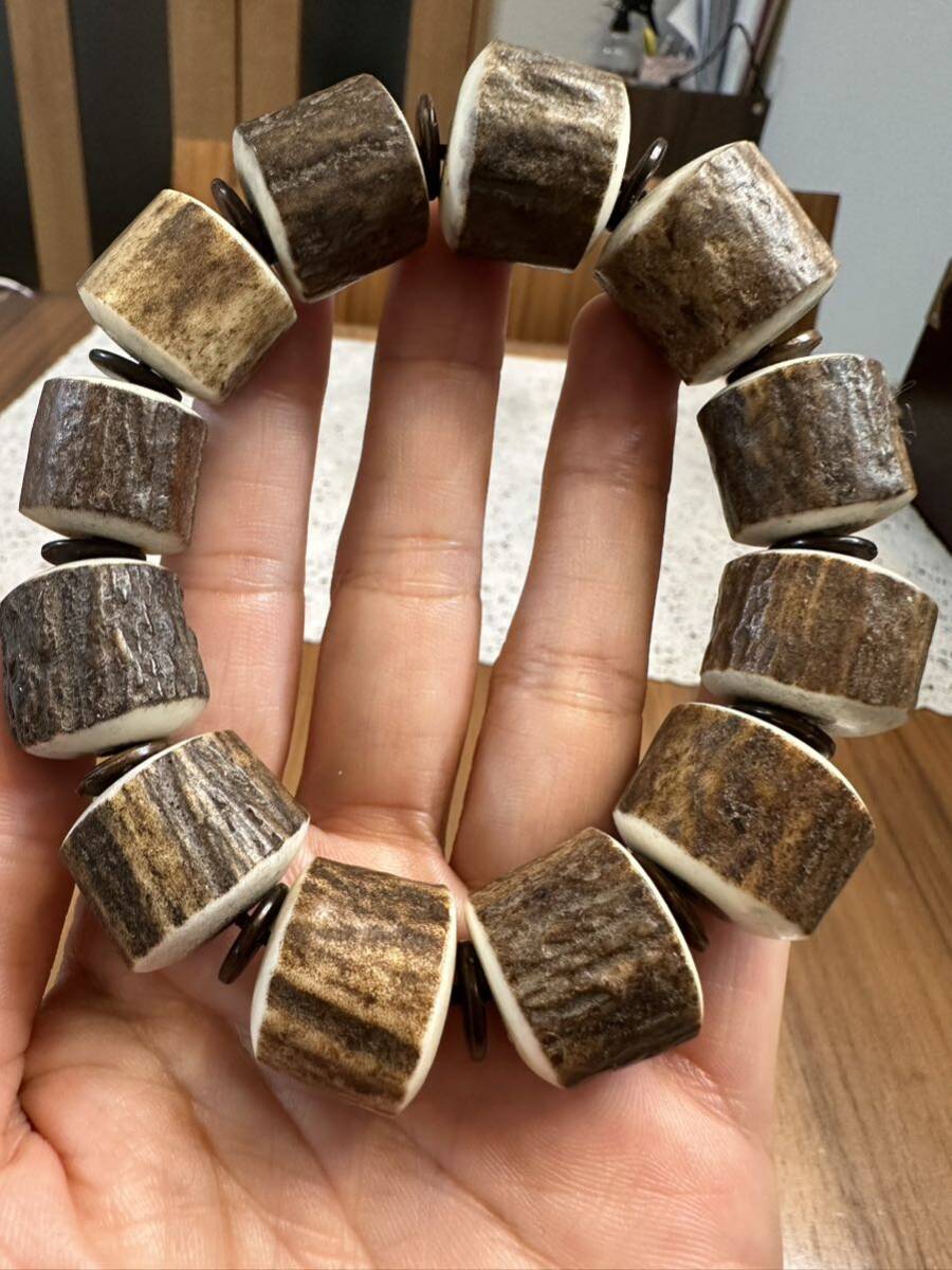 - V-867 高品質 純天然 鹿の角 根付 ブレスレット