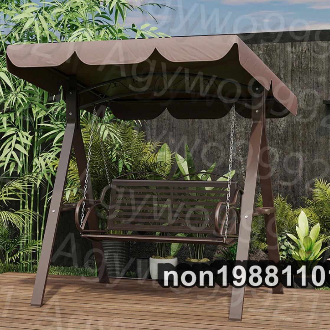 - ブランコ 屋外 二人乗り スイングベンチ スイングチェア 2人用 アイアンスイングロッキングチェア 防水 日焼け止め 棕色