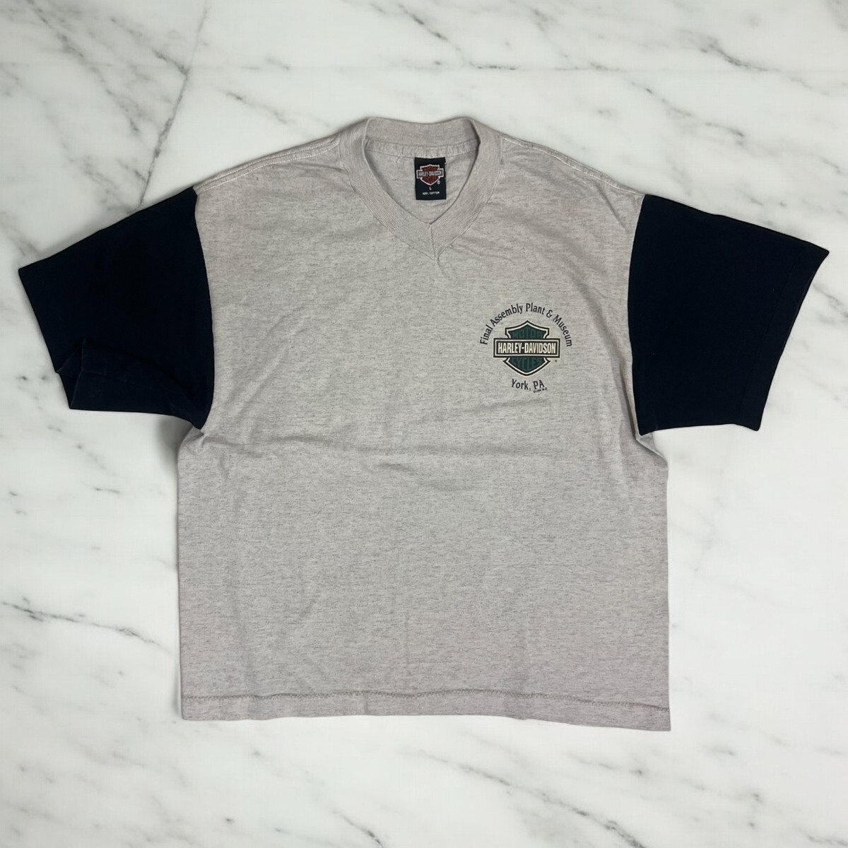 - 送料無料 90' USA製 HARLEY DAVIDSON T SHIRTS KHAKI/BLACK ハーレーダビッドソン シングルステッチ Tシャツ 半袖 【Vintage】【古着】