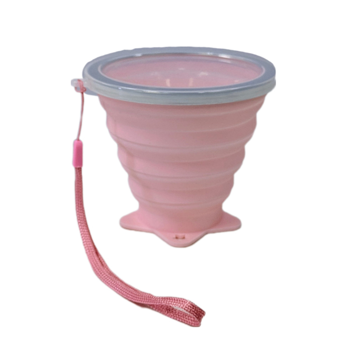- 【P010404】折りたたみシリコンカップ ≪ピンク≫ 携帯コップ コンパクトカップ 計量可能 防災・アウトドア用品