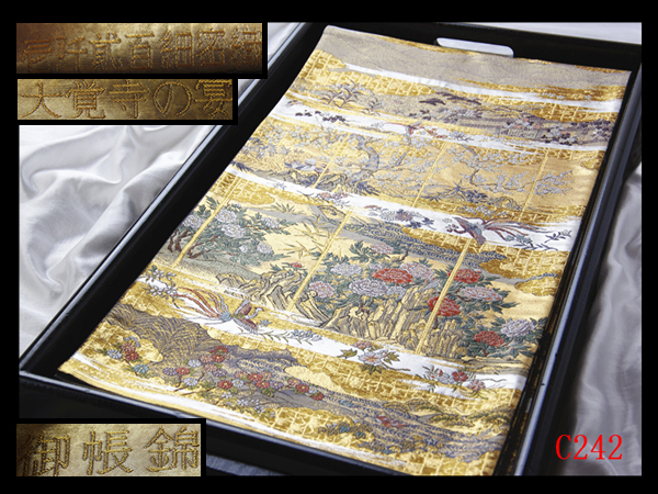 > C242厳選西陣 壱阡貳百細密織 振袖可 御帳錦 大覚寺の宴極上逸品シルバー地 六通高級正絹純金箔美術袋帯 検◇簪名古屋帯締め