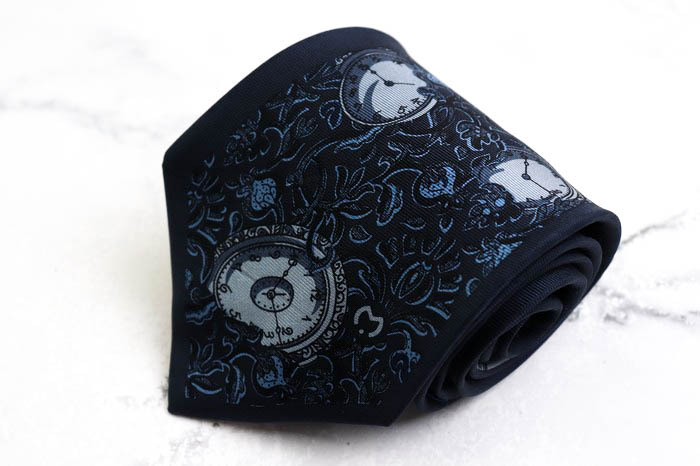 > ミラショーン ブランド ネクタイ パネル柄 花柄 リーフ柄 時計 シルク イタリア製 メンズ ネイビー mila schon