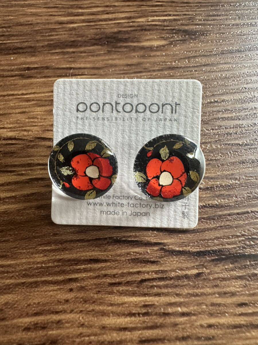 - 新品 ガラス製 丸型ピアス つばき柄 日本製 着物 浴衣 和柄 アクセサリー ヴィンテージ