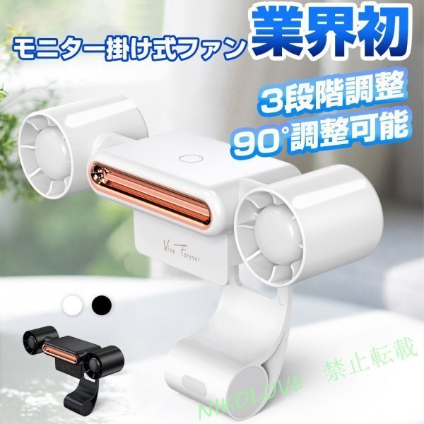 - モニター掛け式扇風機 USB扇風機 卓上扇風機 LEDライト機能 静音 90°調整可能 ファン 空気循環 USB充電 折り畳み 1200mAh LB915