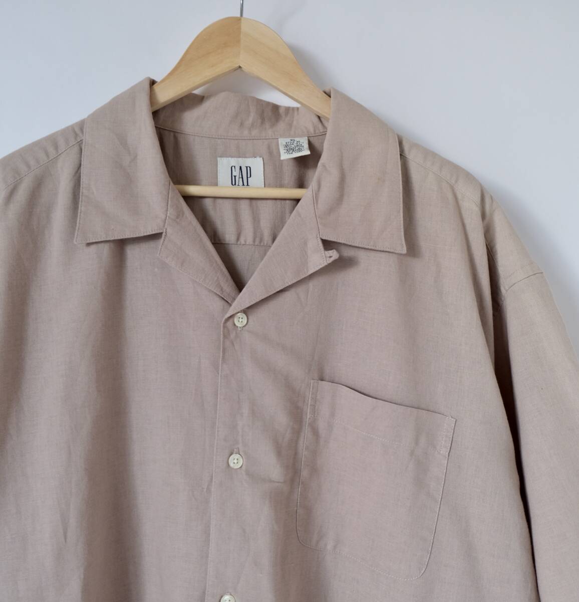- 90s00s 【 OLD GAP 】オールドギャップ リネンコットン オープンカラー ボックス 半袖シャツ / ベージュ系 / XL / ビンテージ 開襟 無地