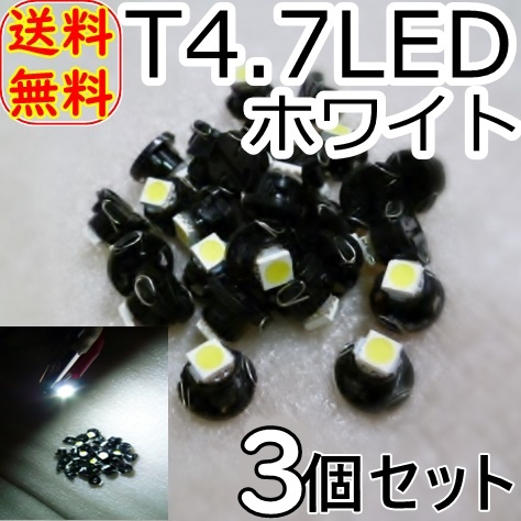 - 送料無料★T4.7 LED★拡散 スピード メーター パネル エアコン ランプ ライト 球☆打ち替え 交換☆ホワイト 白色 3個セット/DC12V/汎用