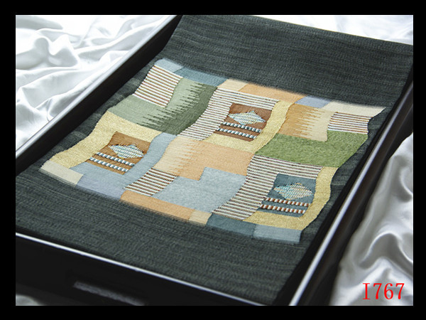 > I767厳選西陣 紬地 組織 装飾紋 高麗納戸色地 長尺太鼓柄正絹純金糸高級美術袋帯 ◇検◇簪着物名古屋帯帯締め